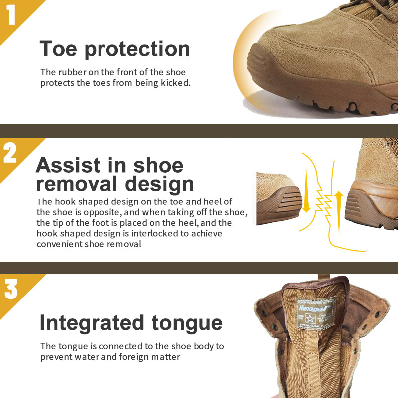 Questi stivali tattici da deserto in gomma e tessuto Cordura sono disponibili e pronti per la spedizione, con ordini a partire da sole 10 paia. Per maggiori dettagli o richieste di prezzi, non esitate a contattarci in qualsiasi momento. È disponibile anche la personalizzazione con un ordine minimo di 800 paia. E questo modello presenta i seguenti vantaggi: